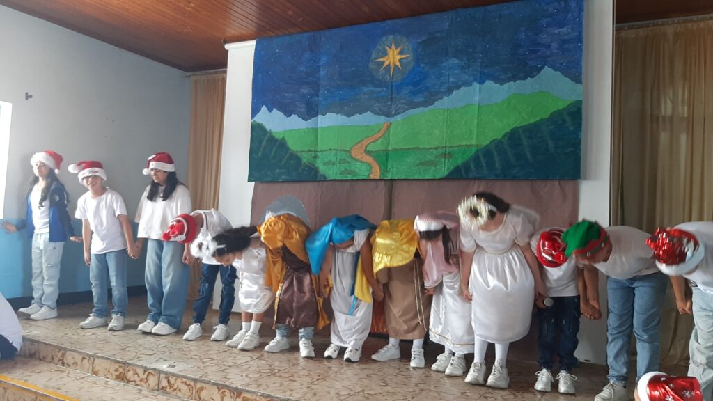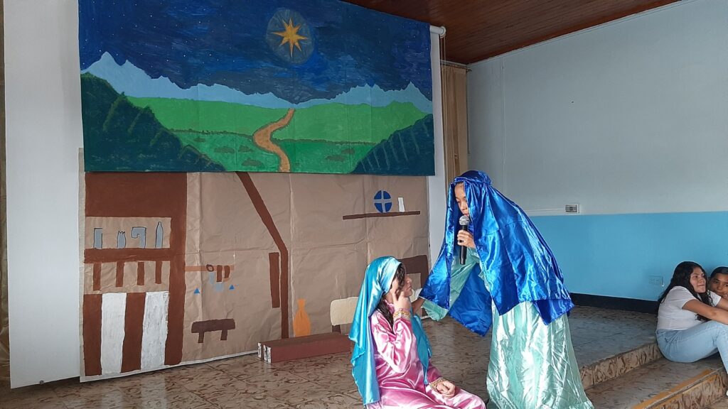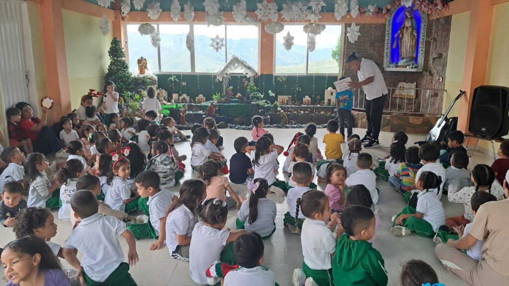 En el CDI Mater Dei de la ciudad de Cali, se destacó la creatividad y el sentido espiritual en la elaboración del pesebre institucional, cuyo diseño y creación estuvieron a cargo de la Hna. Isabel Cristina Bohórquez, profesional psicosocial. Este signo sencillo y lleno de significado invitó a los niños y a la comunidad educativa a contemplar el misterio de la Encarnación. 🎄