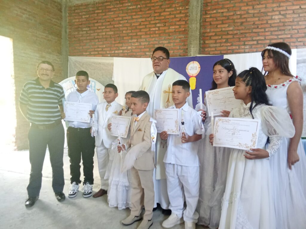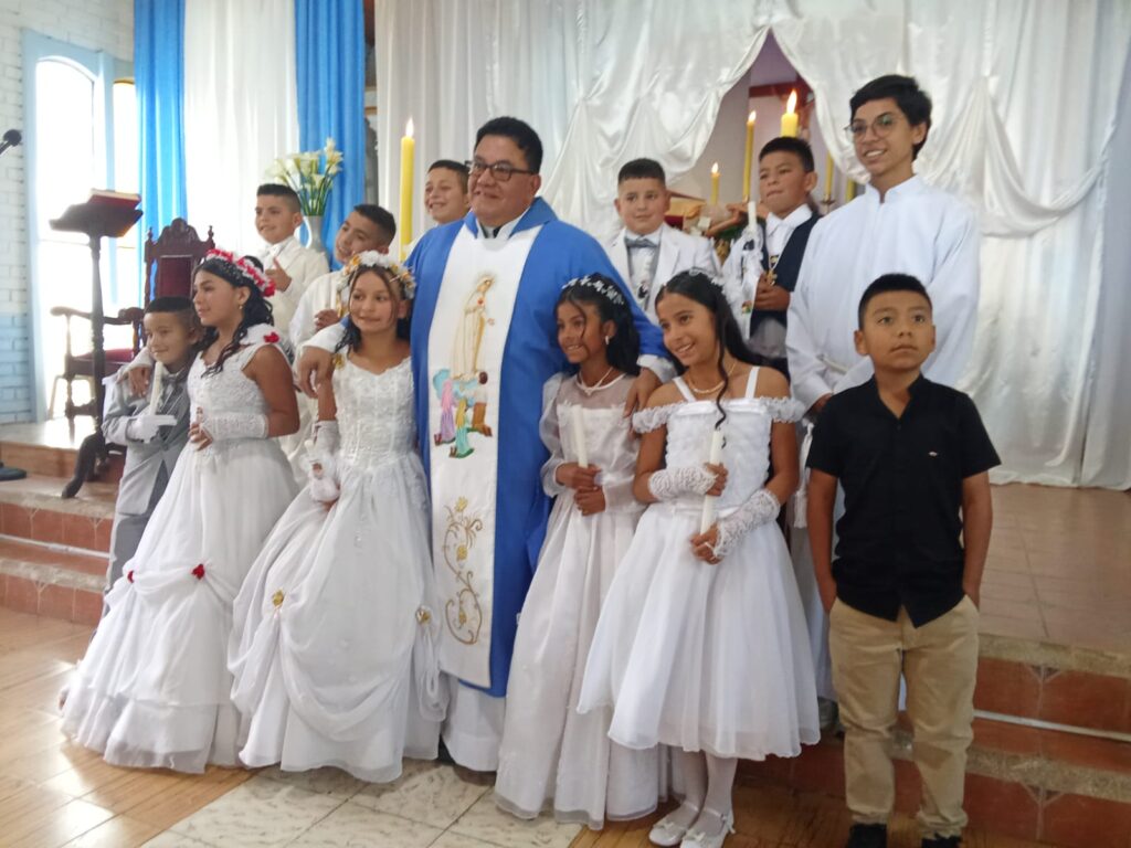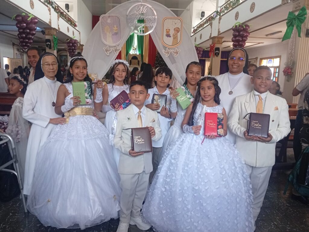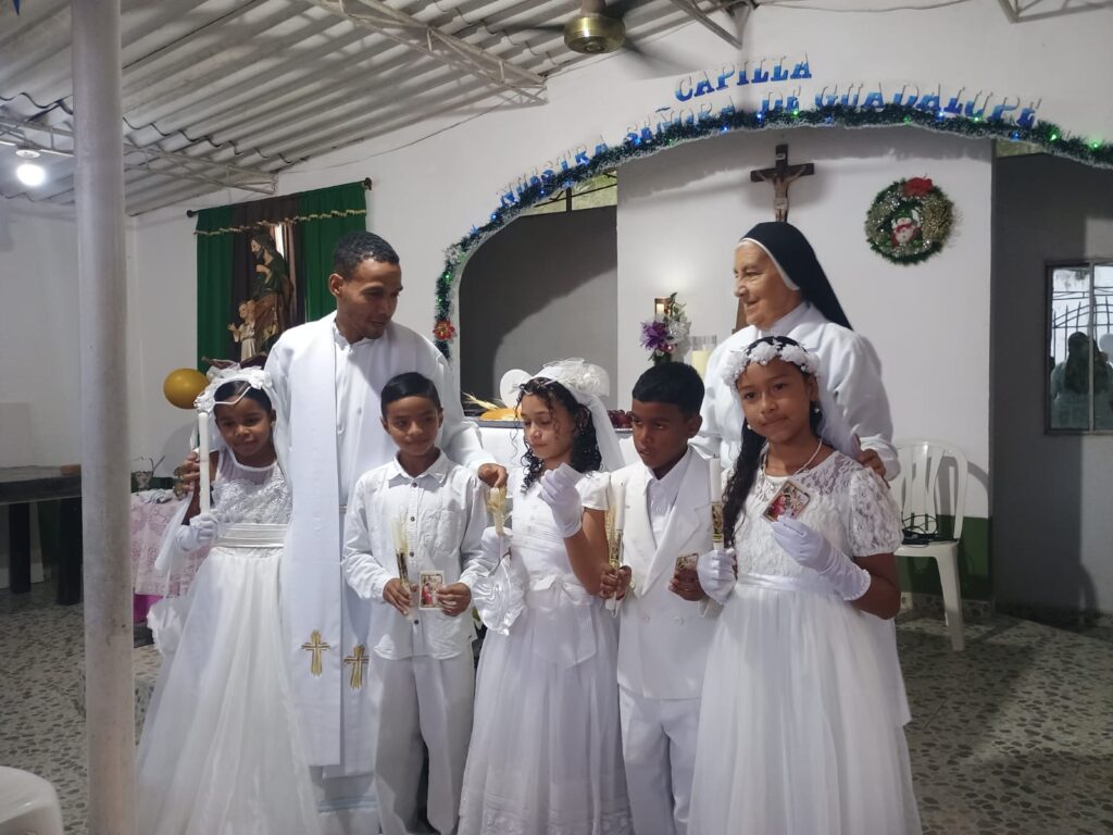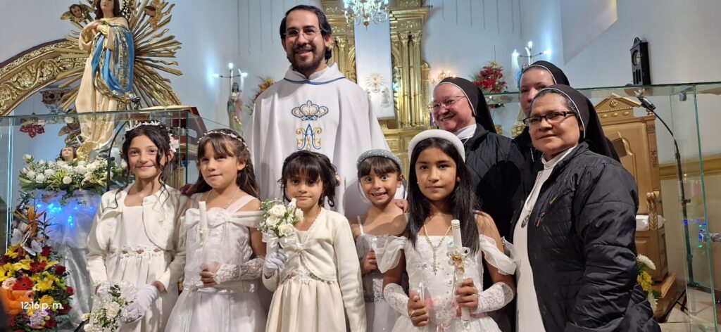 Por otra parte, en la parroquia San Ignacio de Loyola, en el sector de Terrón Colorado, los días 7 y 8 de diciembre se celebraron las Primeras Comuniones de aproximadamente 80 niños. Gracias a la generosidad de un benefactor de la Congregación, todos los niños recibieron como recordatorio un rosario para honrar a la Santísima Virgen, y aquellos que fueron preparados por las hermanas junto a una catequista recibieron además la Sagrada Biblia, como signo del camino que inician en su vida de fe.