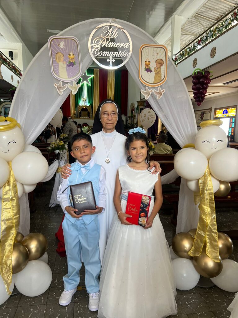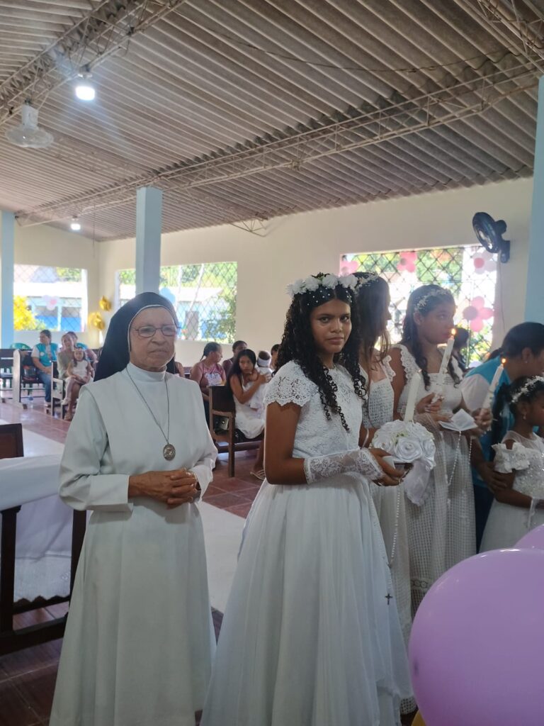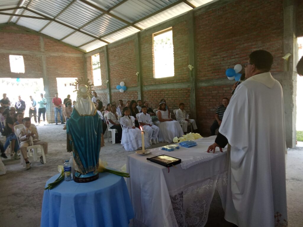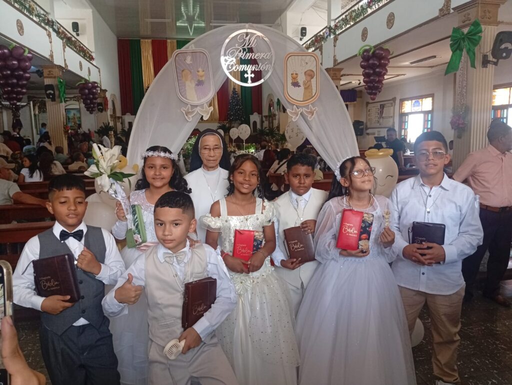 Por otra parte, en la parroquia San Ignacio de Loyola, en el sector de Terrón Colorado, los días 7 y 8 de diciembre se celebraron las Primeras Comuniones de aproximadamente 80 niños. Gracias a la generosidad de un benefactor de la Congregación, todos los niños recibieron como recordatorio un rosario para honrar a la Santísima Virgen, y aquellos que fueron preparados por las hermanas junto a una catequista recibieron además la Sagrada Biblia, como signo del camino que inician en su vida de fe.