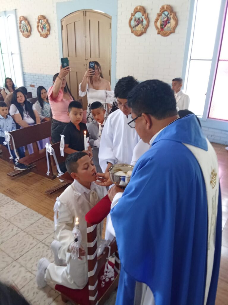 En el templo parroquial Nuestra Señora de Fátima de Tenerife, el día 7 de diciembre, y en la capilla de La Albesia, el 8 de diciembre, se celebraron las Primeras Comuniones de aproximadamente 20 niños y niñas, quienes participaron por primera vez en el banquete del Señor con gran alegría. Al finalizar la celebración, se compartió un refrigerio y se entregó un pequeño detalle como recuerdo de este día tan significativo.