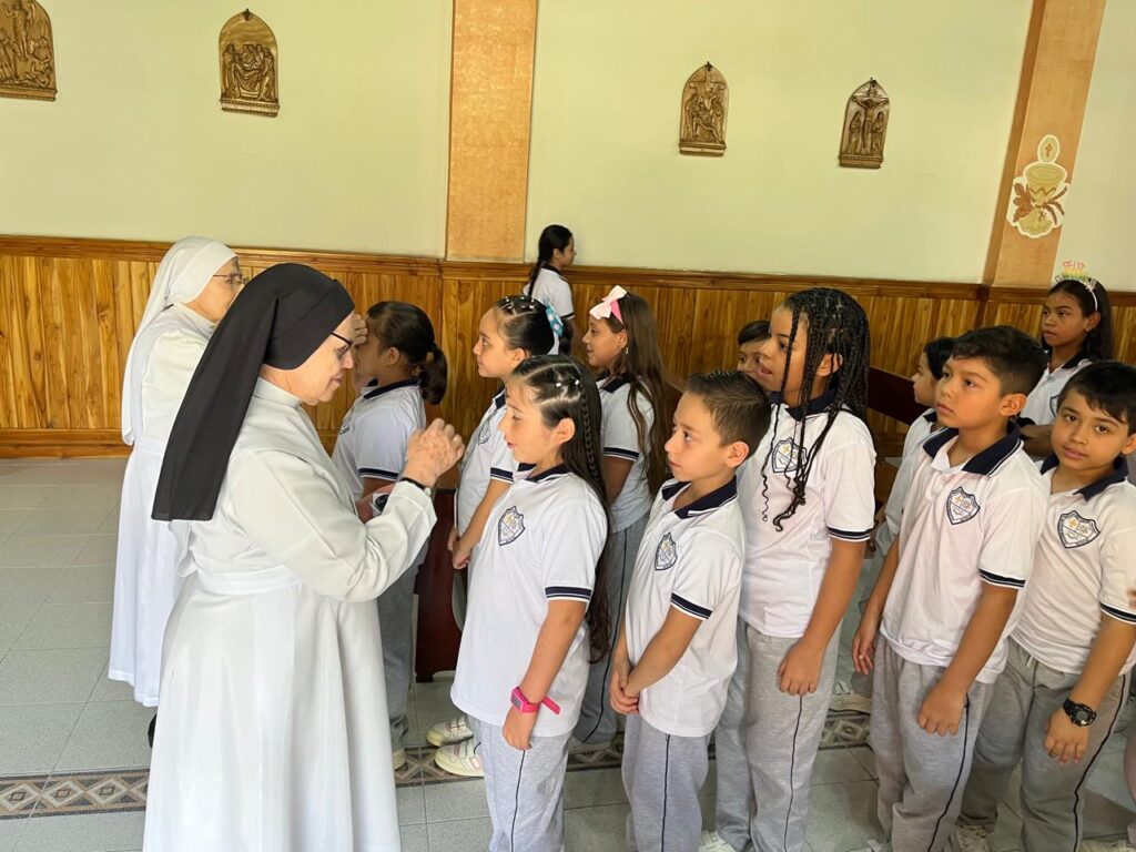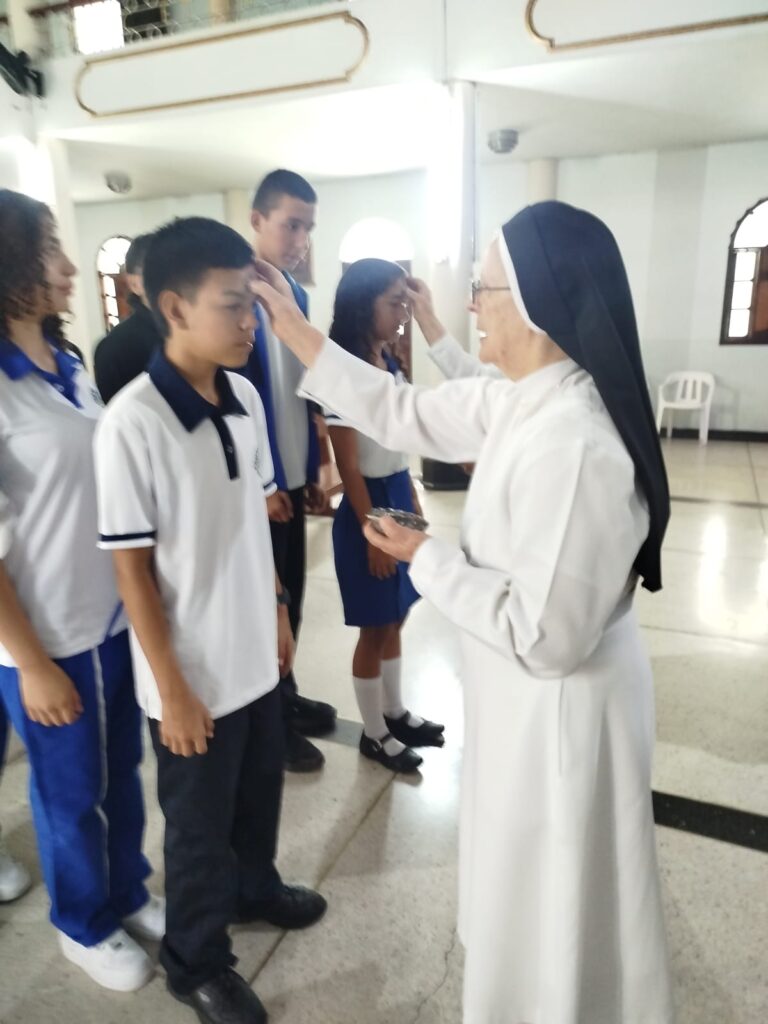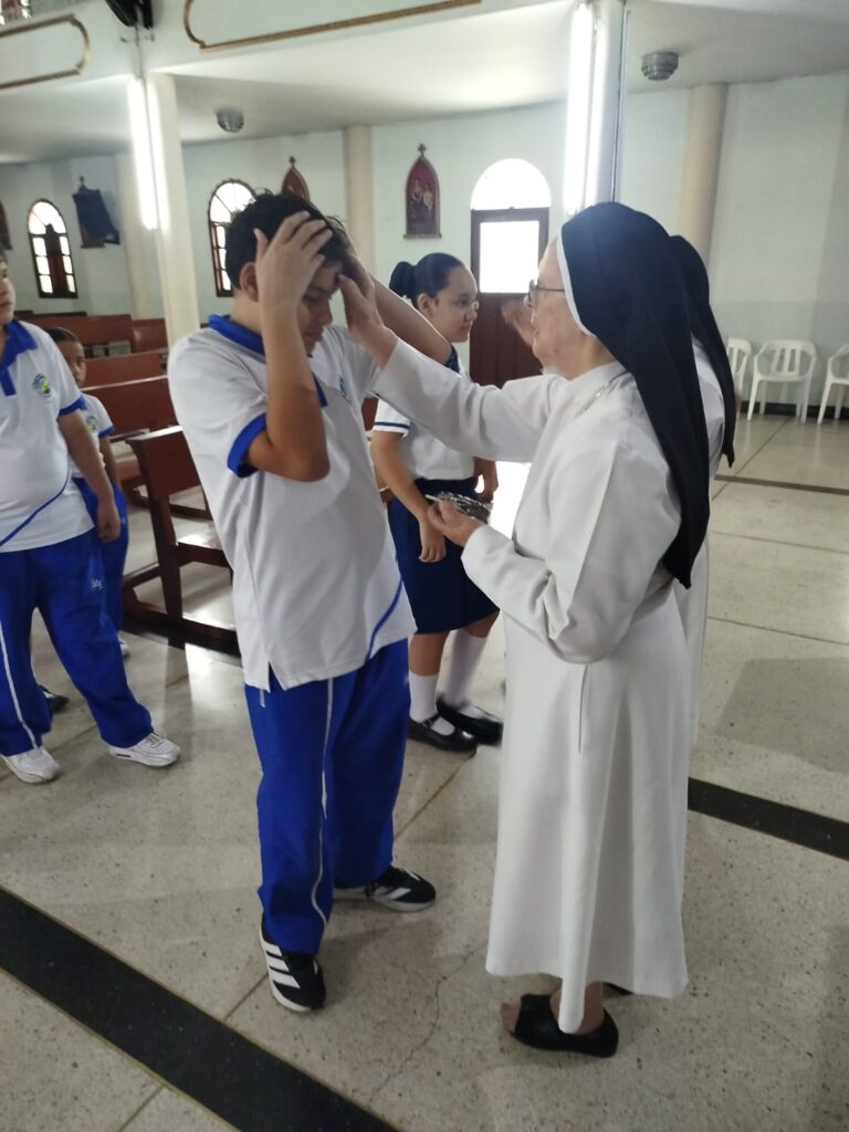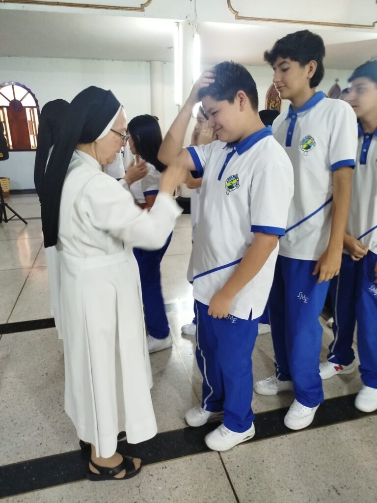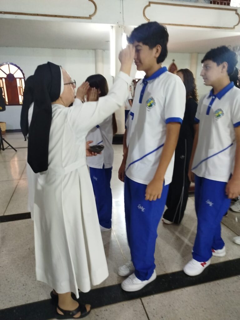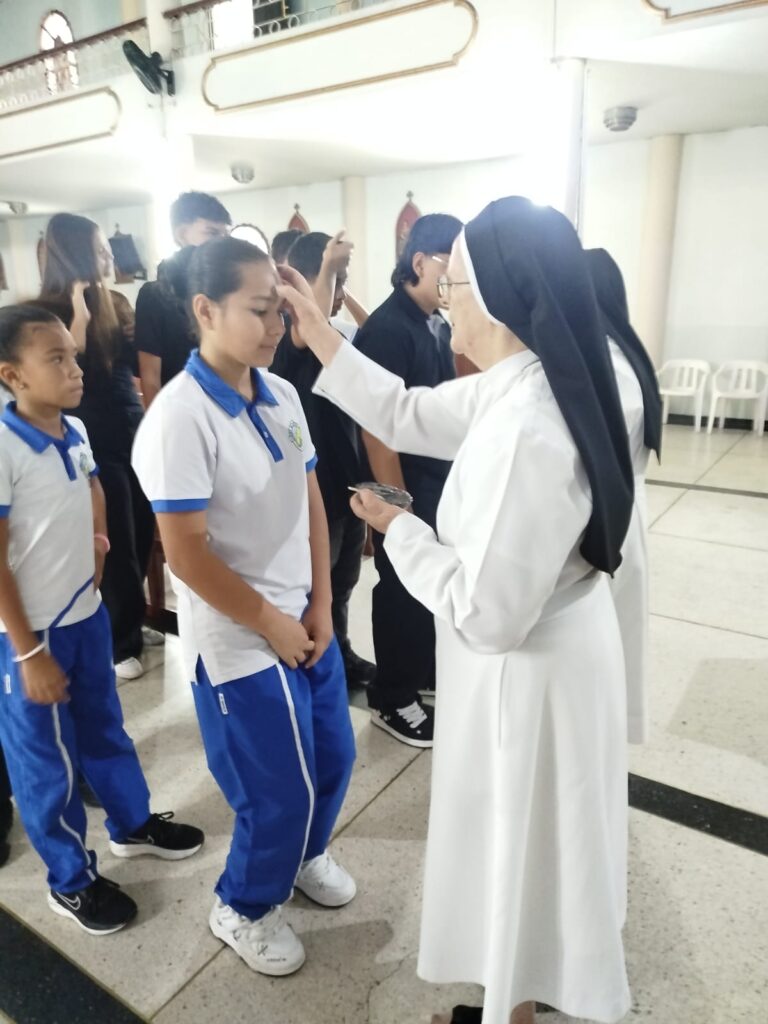 En el gran conjunto de instituciones de Palmira, las hermanas Melida Giraldo y Alba Calle acompañaron la jornada del miércoles 18 de febrero, compartiendo el mensaje cuaresmal e imponiendo la ceniza en cada comunidad educativa, invitando a vivir este tiempo con mayor oración, reconciliación y fraternidad.