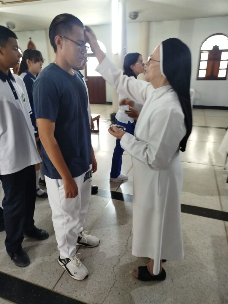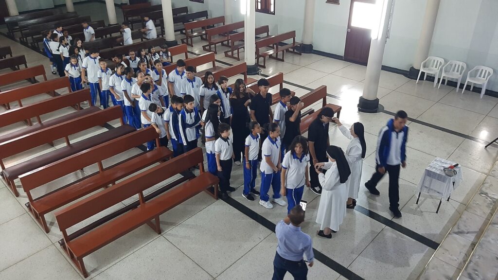 En el Colegio Hogar Madre de Dios de Popayán, el personal estudiantil asistió a la Eucaristía en la Iglesia de San Francisco de Asís, donde recibieron la Santa Cruz como gesto de compromiso al comenzar este tiempo litúrgico.