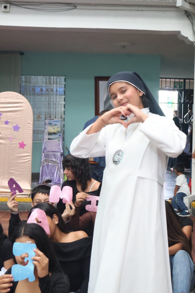 Asimismo, los estudiantes prepararon un momento especial en el que rindieron homenaje a mujeres que han dejado huella en la historia, destacando figuras como Madre Elisa de Jesús Jaramillo Botero, Madre Teresa de Calcuta, Juana de Arco y Marie Curie. A través de sus presentaciones, recordaron el legado de estas mujeres que, con su fe, valentía, servicio y conocimiento, han marcado la historia de la humanidad.
